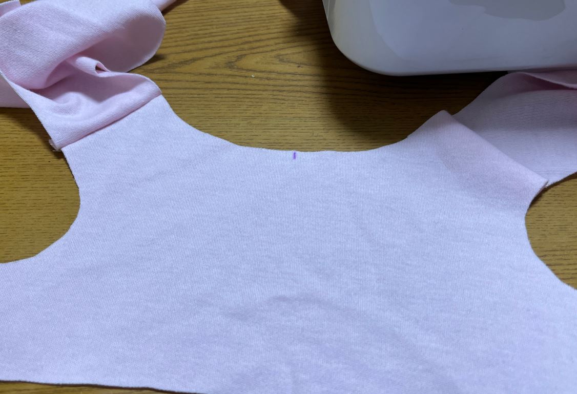 まず、後身頃の中央にチャコペンで印を付けます。