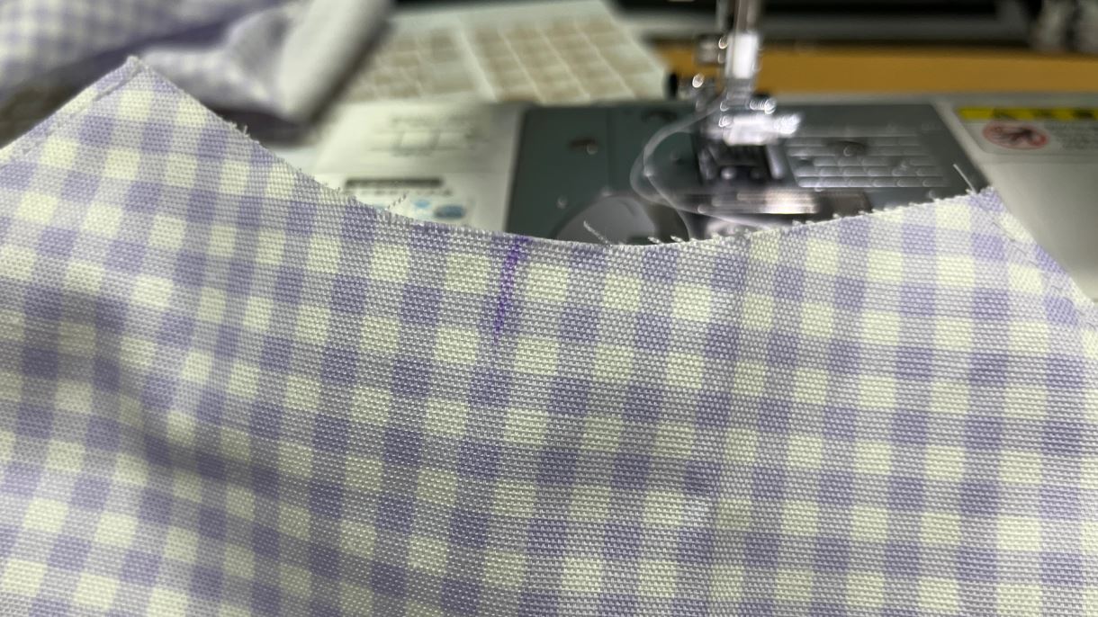印の位置から下へ、縫い代1cmでミシンを掛けます。