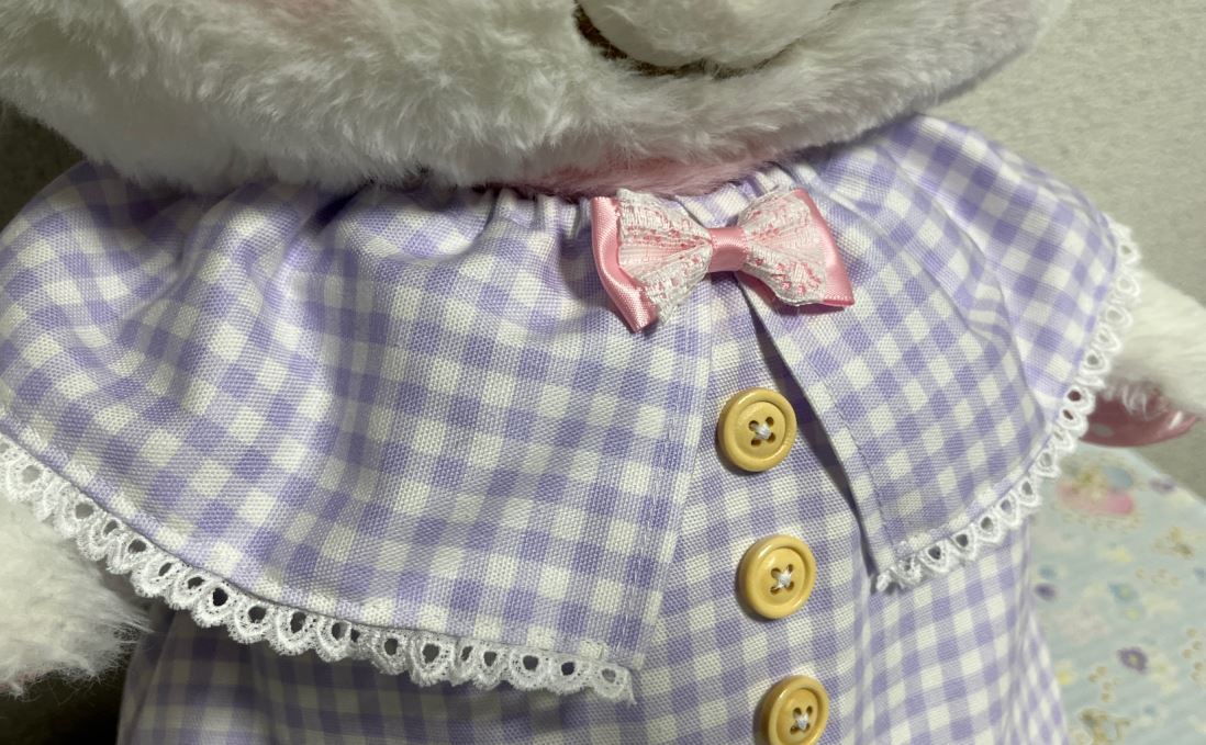 身頃にくっついているリボンは100円ショップで売っていたものを撮影用に置いてあるだけです。