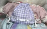 本物のボンネットは帽子のようなものがついているのですが無理なのでゴムで固定する方式にしています。