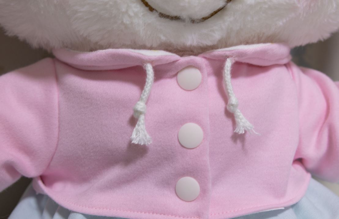 パーカーの紐はループエンドを付けるともっと可愛いかもしれませんね。
